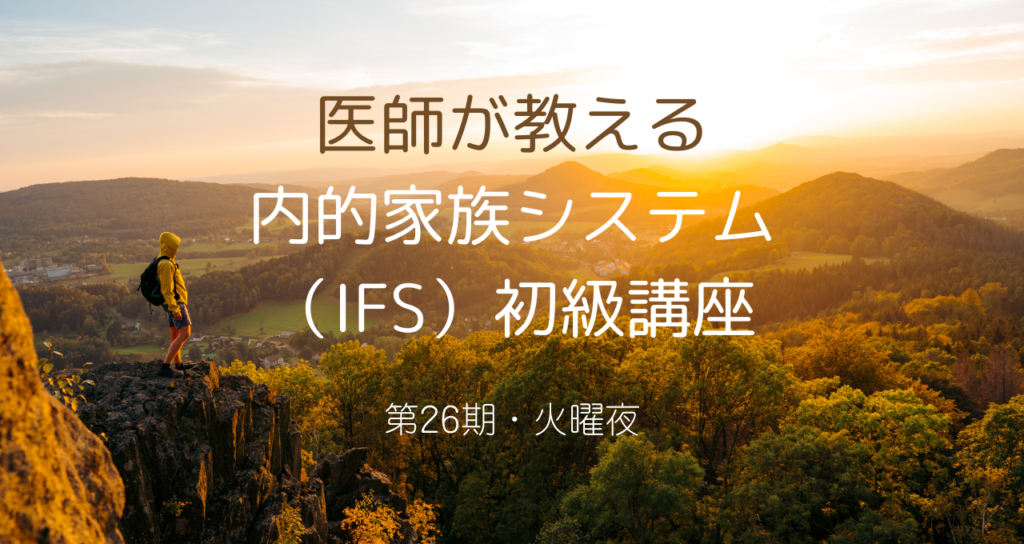 2026年4月7日(火)20時~開催、第26期医師が教える内的家族システム(IFS)講座(Zoomオンライン・7回シリーズ)の募集を開始しました。満員御礼となりました。